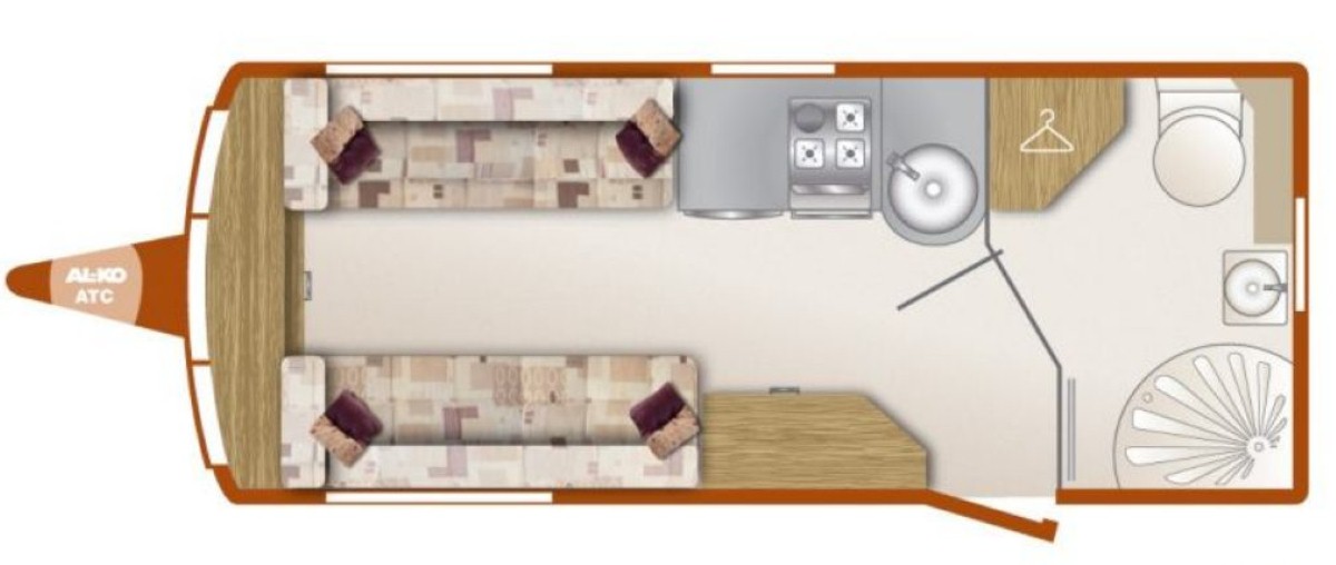 Carried over from the old Bailey Unicorn range, the Seville layout offers a spacious two-berth configuration, perfect for couples looking for added luxury on their touring holiday. Starting at the front, and Bailey has fitted a large convertible double dinette, which makes up into a bed measuring 6’9″ by 5’&7″ by use of the sprung beech slide-out mechanism. Alternatively, there is the option of using them as twin single beds.
